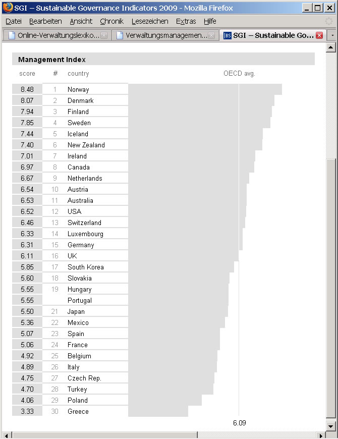 Der Index vergleicht 30 OECD-Länder u. a. im Hinblick auf Management-Qualität und -Leistung. Die Ergebnisse im Überblick enthält die folgende Abbildung: